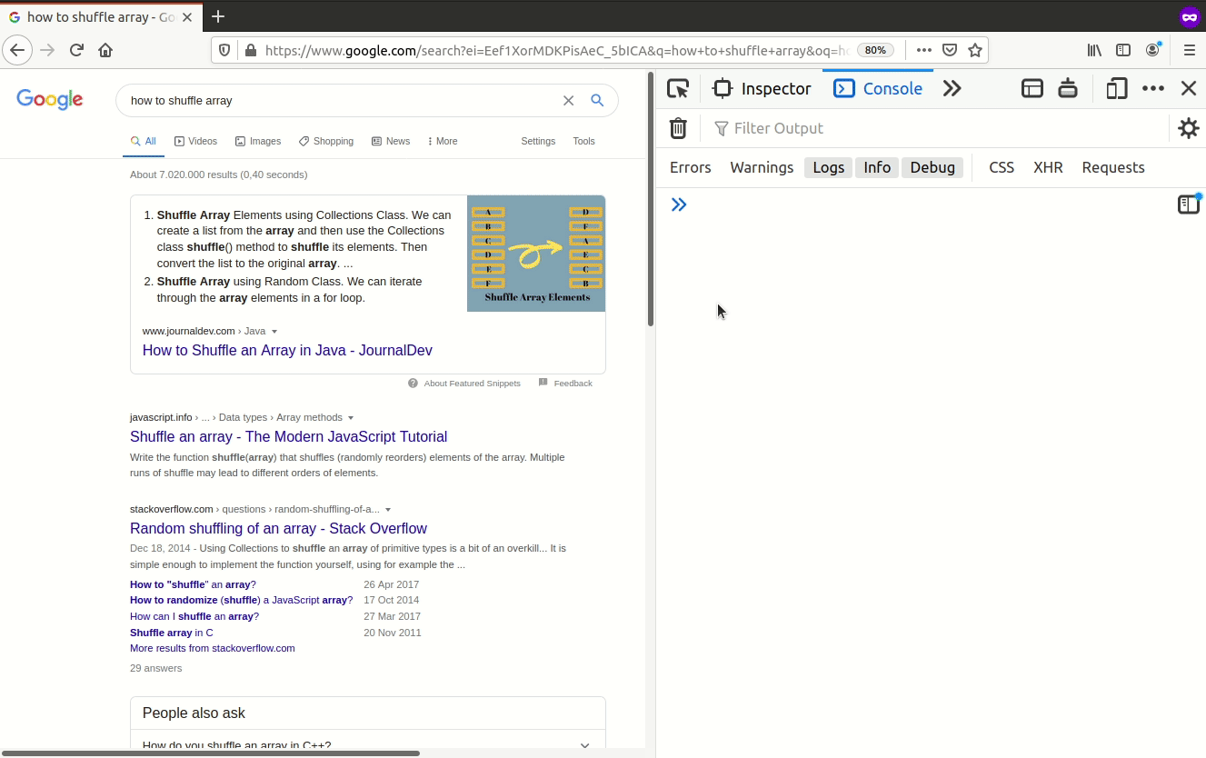 std::shuffle applied to https://www.google.com/search?q=how+to+shuffle+array
