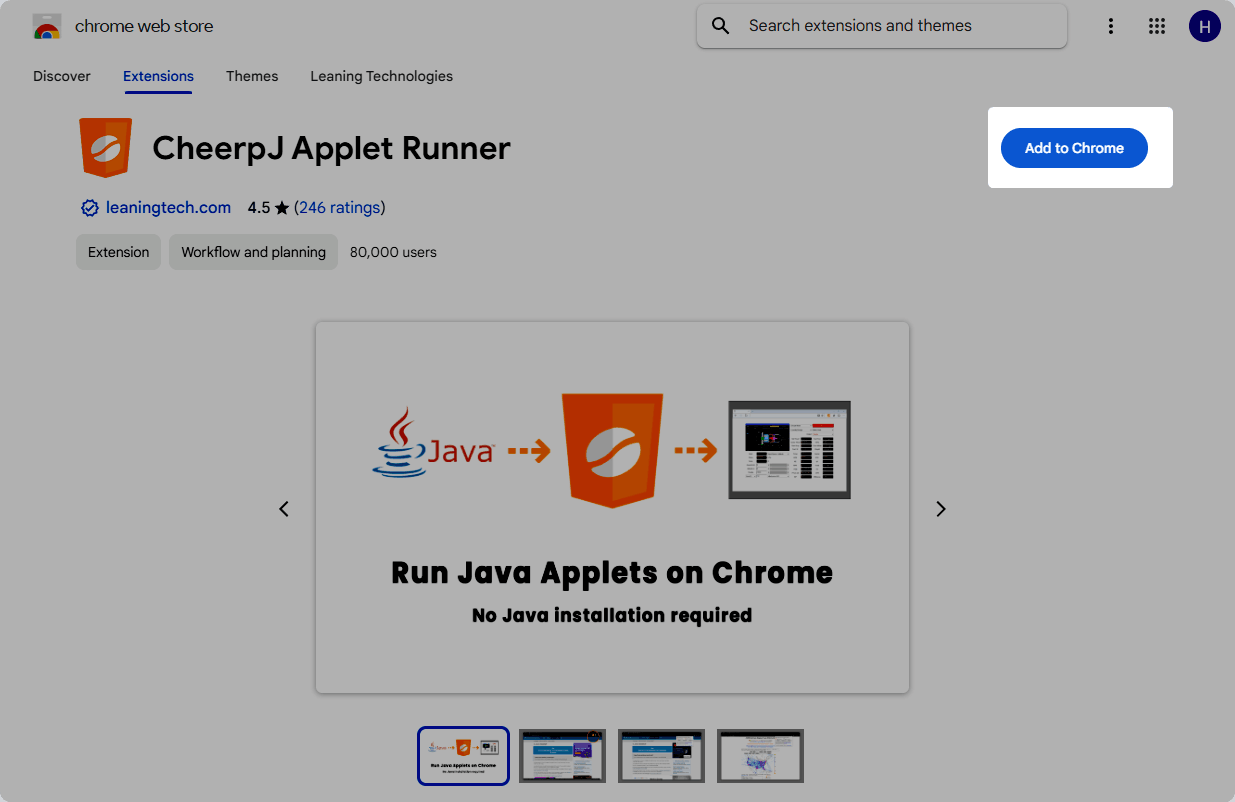 Install CheerpJ Applet Runner for Chrome